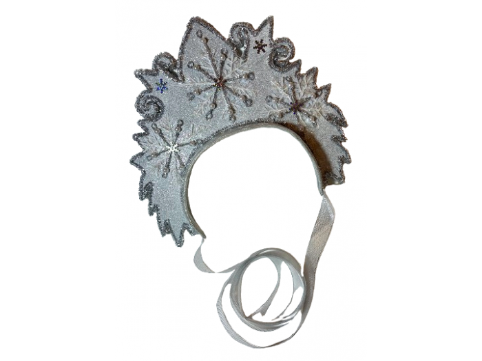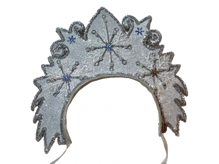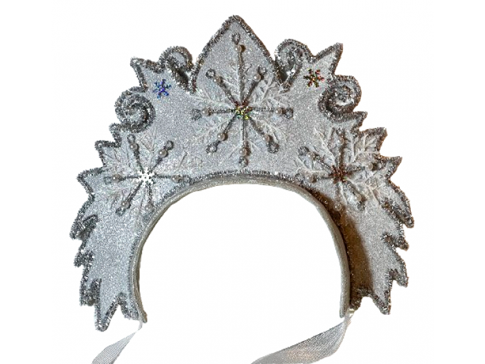 Лицьову частину корони прикрашають делікатні сніжинки білого та сріблястого кольору, що створюють відчуття легкого зимового візерунка та підкреслюють назву виробу.
