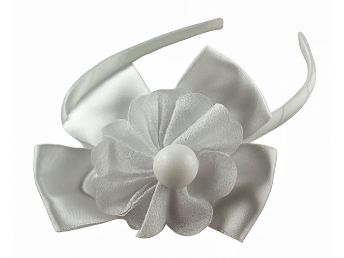 нами модель украшена красивым белым бантом из атласной ткани. В центре