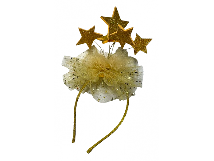 Зірочки виконані з глітерного фоамірану - легкого, блискучого матеріалу, що створює святковий настрій і не обтяжує конструкцію. Обруч у ніжному золотавому кольорі виглядає елегантно, святково й по-справжньому казково.