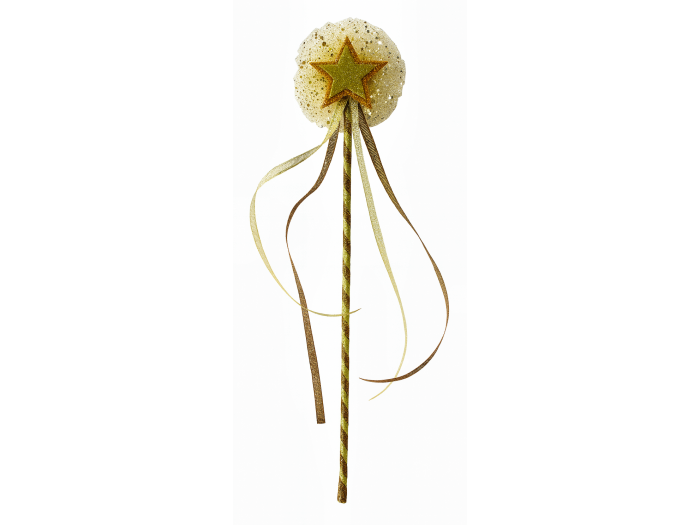Виріб являє собою легку порожнисту трубочку, акуратно оброблену парчовою стрічкою. Верх палички прикрашений красивою зірочкою, що розташована на ніжній фатиновій пачці. Від зірки донизу спадають тонкі стрічки, які при кожному помаху красиво майорять, створюючи ефект справжнього чаклунства.