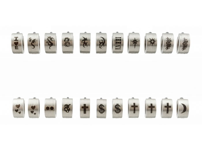 Готовы завоевать лояльность неформальной аудитории? Матовые серьги-пирсинг с дерзкими черными принтами это не просто украшения, а символы свободы. 48 штук в упаковке, универсальный дизайн и надежность ваш ключ к прибыли в нише альтернативной моды!